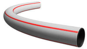 aus LDPE (Rezyklat), mit heller Aussenschicht und roten Streifen.